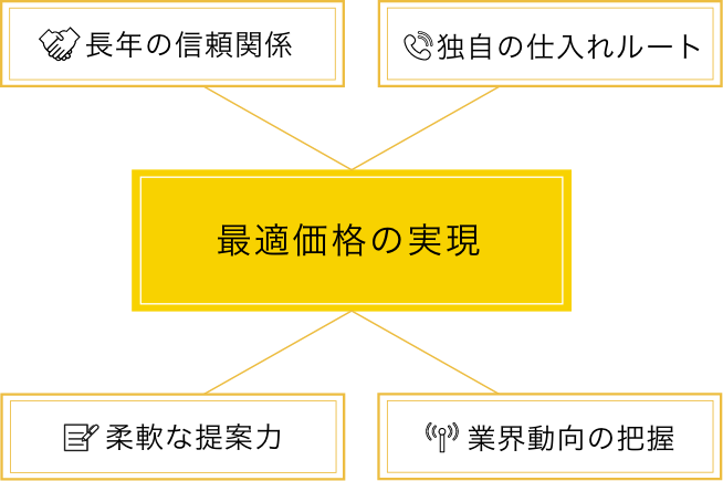 業界動向や市場価格を常に把握し、無駄のない提案と柔軟な対応で“最適価格”を届けます。